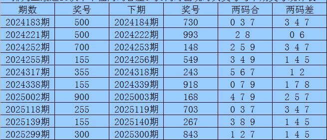 从以上统计可以看出,十个位两码合差0与0同时出现之后其下期两码合差表现最热的4个分别为:1347,本期十个位两码合差可以参考这四码中的数据。