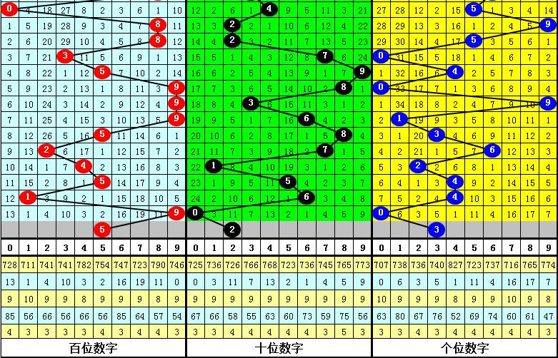 从以上统计可以看出,百十位两码合差9与9同时出现之后其下期两码合差表现最热的4个分别为:2357,本期百十位两码合差可以参考这四码中的数据。