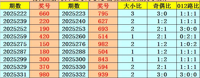 十位号码:十位上期开出偶数、小 号、0路号码:0,历史上十位号码0共开出725期,上一次出现在第2025314期,上期奖号遗漏值为24期。