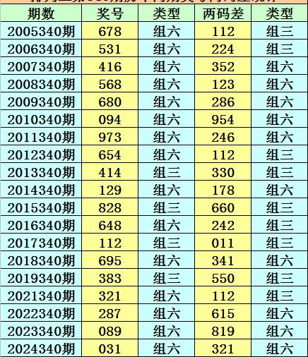 在历年开奖中,两码差开出年限分别为:1、2出现10年,3、4出现5年,0、5、6出现4年,8出现3年,9出现2年,7出现1年,第2025340期预计两码差出现:1、2、3。