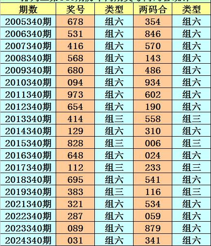 排列三从2004年开奖至今已开出7463期奖号了,其中第340期历史同期奖号出现19次,历年第340期分别开出号码:678、531、416、568、680、094、973、654、414、129、828、648、112、695、383、321、287、089、031。