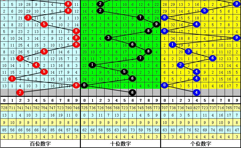 其中,百位奇偶比为9:5,大小比为5:9,本期百位一码参考2。