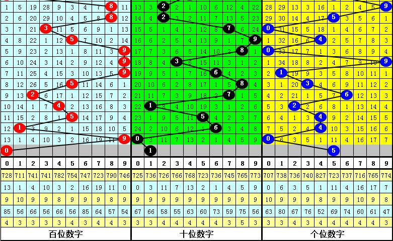 另外,在组选0-9的号码分布中,号码4、7表现最冷,开出4次;号码5走势最热,开出了12次。本期预计号码组457中落号,参考号码57。