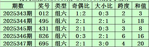 上期回顾:排列三第2025347期开奖号码为695。奖号类型为组六,奇偶比为2:1,大小比为3:0,跨度为4,和值为20。