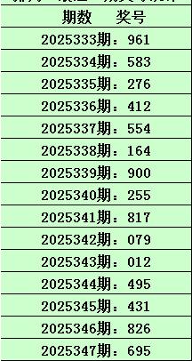 开奖回顾:排列三第2025347期开出奖号:695,其类型为:组六,直选形态为:偶奇奇、大大大、002路、冷热热、合合质。