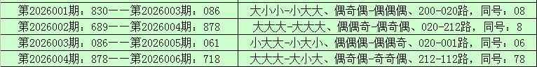 则,排列三第2026005期奖号:061,与排列三第2026007期奖号可能有相同的号码。或者排列三第2026007期奖号大小比、奇偶比和012路比可能与第2026005期奖号形态:小大小、偶偶奇和001路相似。