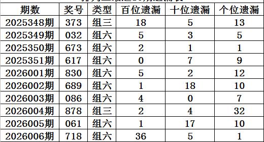 上期回顾:排列三第2026006期奖号:718,组六,直选遗漏总值为42期。