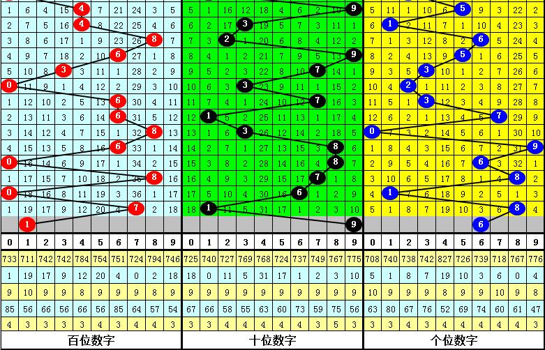 百位:上期开出7,近10期012路比为7:1:2,其中1路号遗漏11期再出,本期防1路号再出,参考1。
