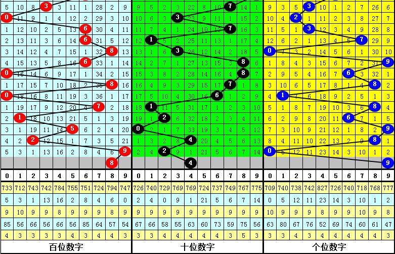 【百位】:上期出现:奇数、大号:9,在连续7期开奖中,百位号码分别为:偶数、大号:8;偶数、小 号:0;奇数、大号:7;奇数、小 号:1;奇数、大号:5;偶数、小 号:2;奇数、大号:9,其中偶数出号较少,大号表现频繁,百位本期注意偶数、大号开出。