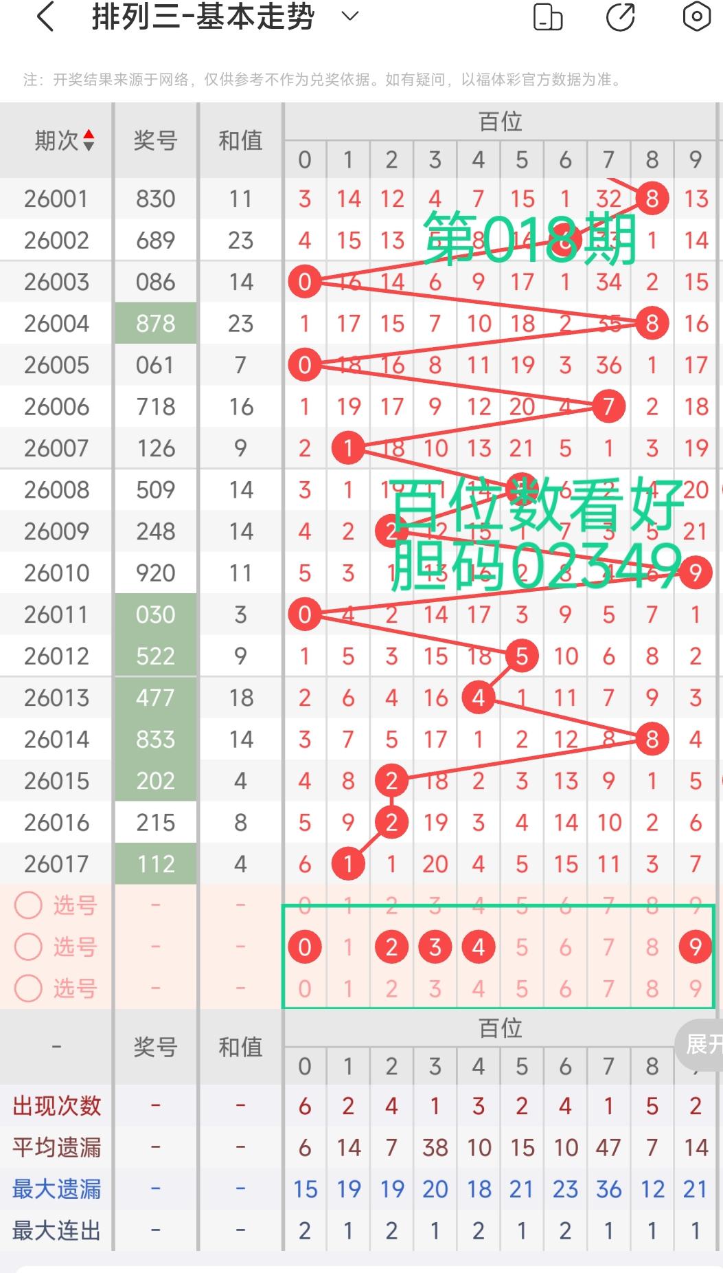 >排列三第018期的精心推荐,希望能助力大家选号: