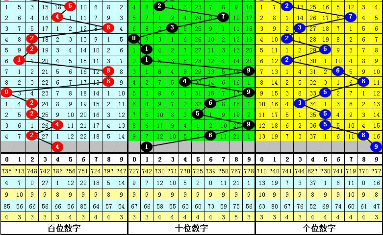 百位:最近小 号出现频率较高,当前连续出现了5期,本期适当关注该位 小 号再出;另外,在最近20期开奖中,该位以1路和2路号码为主,0路号码出现相对较少,本期防0路号码再次轮空,参考号码4。