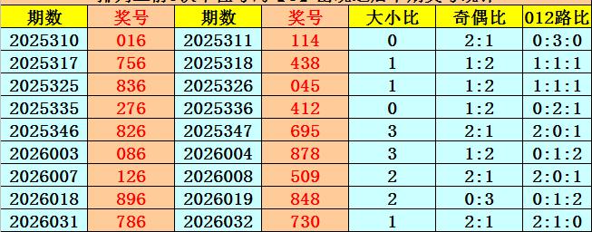 个位号码:上期奖号为大号、偶数、0路号码:6,历史上个位号码6共开出743期,前一次出现在第2026031期,上期遗漏2期再出。