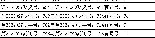 与前期历史同期奖号对比分析,在最近五年开奖中,第027期同期奖号与第040期同期奖号都出现了相同号码: