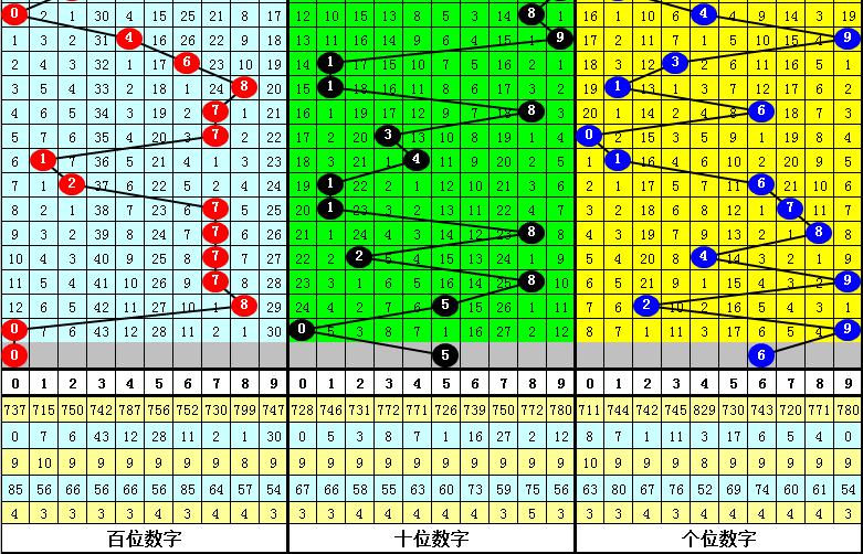 在以上统计中奖,直选000组合之后,下期奖号百位开出号码:02356789,未开出号码14,其中百位号码奇偶比为5:5,012路比为6:1:3,大小比为7:3,本期预计百位出现小 号,精选一码0。