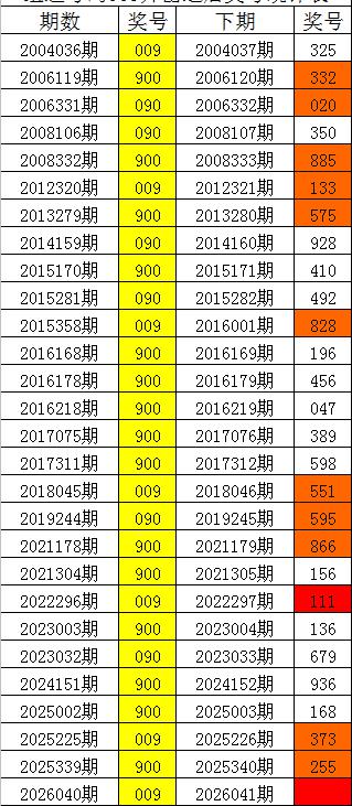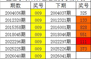 一、体彩排列三第2026040期奖号为009,该号码历史上直选出现了7次,组选出现了28次。