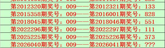 排列三第2026040期开出奖号009,该号码直选类型历史上出现了7次,前6次开出之后期下期奖号为:325、133、828、551、111、373,见下表: