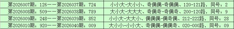 所以,排列三第2026015期奖号:202,与排列三第2026041期奖号可能没有同号。或者排列三第2026041期奖号大小比、奇偶比和012路比可能与第2026015期奖号直选形态:小小小、偶偶偶和202路不全部相同。
