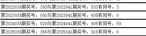 与前期历史同期奖号对比分析,在最近五年开奖中,第038期同期奖号与第041期同期奖号都出现了相同号码: