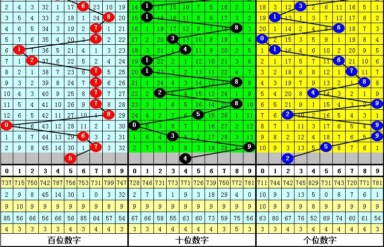 跨度分析:最近5期分别开出跨度:2、6、9、6、4,本期注意跨度走小,参考跨度3。