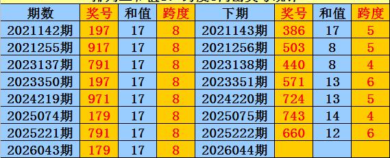 上期回顾:排列三第2026043期奖号:179。和值17,跨度8。