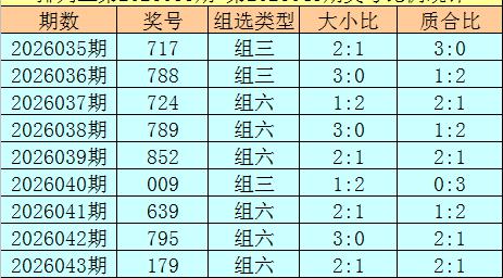 上期回顾:排列三第2026043奖号开出179,奖号质合比为2:1,大小比为2:1,跨度为8,类型为组六。