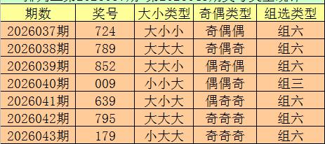 排列三第2026043期回顾:奖号179,奇偶比3:0,大小比2:1,和值17,类型:组六。