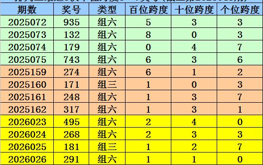 第2025176-第2025178期奖号:949、977、714,其下期奖号为:972,中位号码跨度为2;