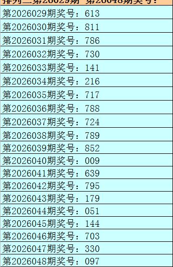 开奖回顾:排列三第2026048期开出奖号:097。其中奖号大小比为2:1,奇偶比为2:1,012路比为2:1:0,和值为16,跨度为9。