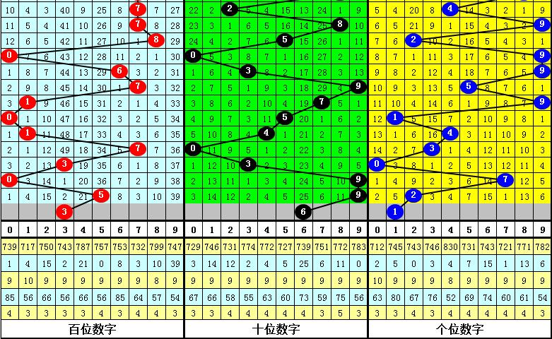 百位:近期大小 号码开出比例基本相当,上期开出大号之后,本期注意该位小 号出现;另外,该位0路和1路号码在最近20期奖号中走势较热,2路号码表现相对较冷,本期该位放弃2路号码,参考号码3。
