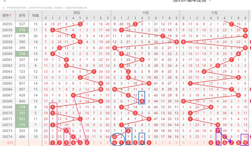 5、综上所述排列3-第075期定位推荐信息如下:
