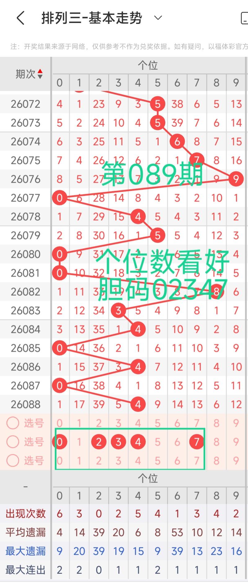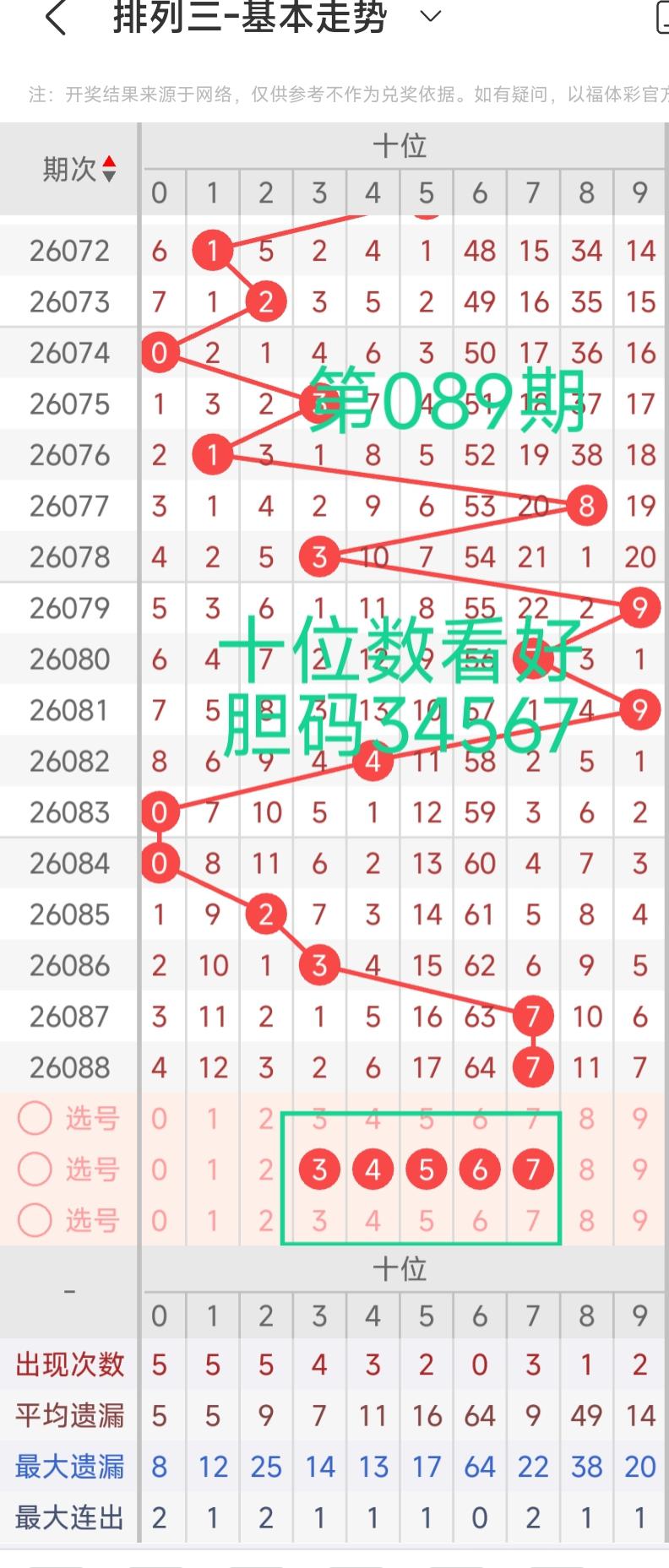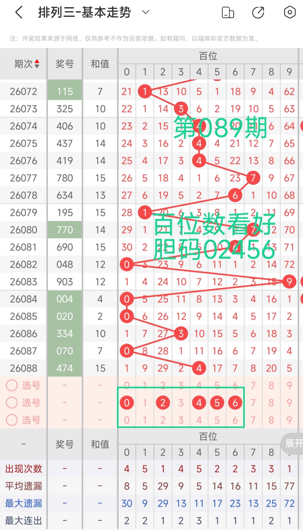 >排列三第089期的精心推荐,希望能助力大家选号: