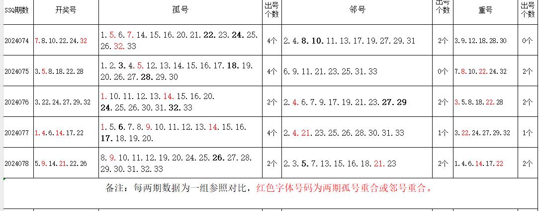如图,以近两期数据为一组,进行对比分析。相同的孤号、邻号,可能在下期开出。本期参考孤号:1.2.3.7.11.12.16.17.18.19.24.28.29.30.31.32.33,邻号:4.6.8.10.13.15.20.23.25.27。孤号重合号码精选:***(会员专区可见)。个人分析,仅供参考。
