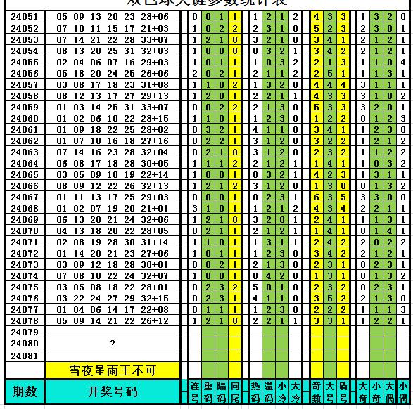 上期热、温、小、大冷为2211组合形态(追踪数据请参阅前面的双色球关键参数统计表)。