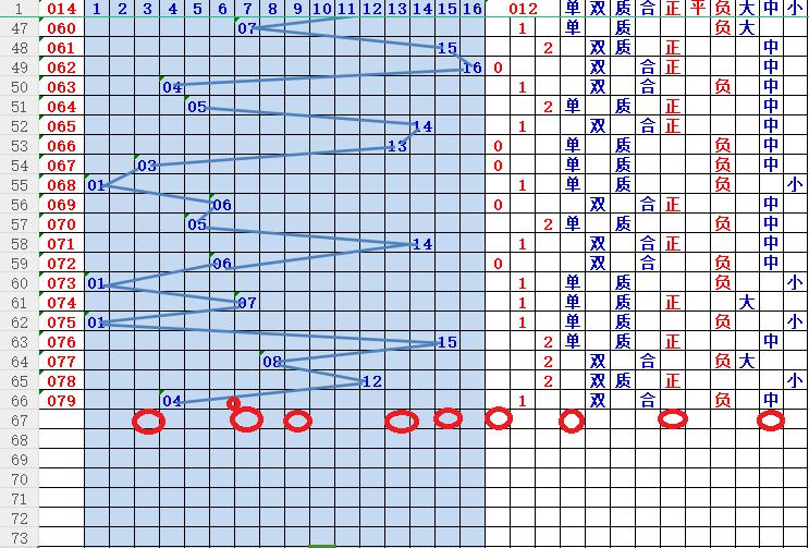 如上图4,012路分析012路,本期重点12路。重点 03 07 09 13 15
