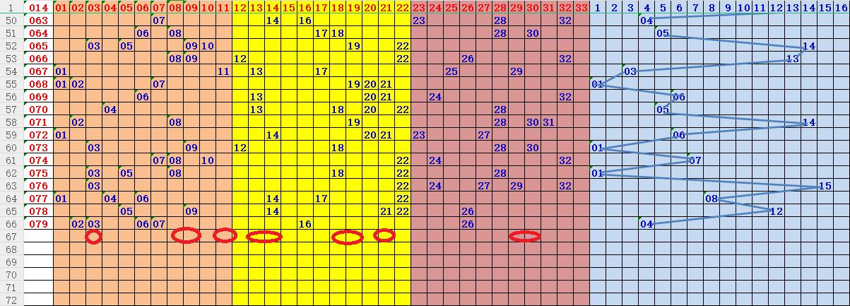 如上图1,区域分析,第一区最低出2个号,重点号码:03 08 09 10 11