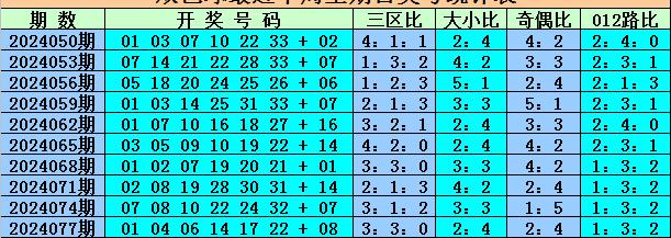 三区间分布分析:上周日第24077期奖号为:01、04、06、14、17、22+08,区间比为3:3:0。本期热区关注红三区,关注区间比:1:2:3。