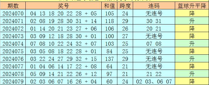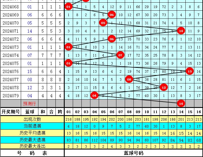 上期开奖:福彩双色球第2024079奖号开出:020306071626+04,红球号码和值为60,首尾间距为24,包含连号:0203、0607。
