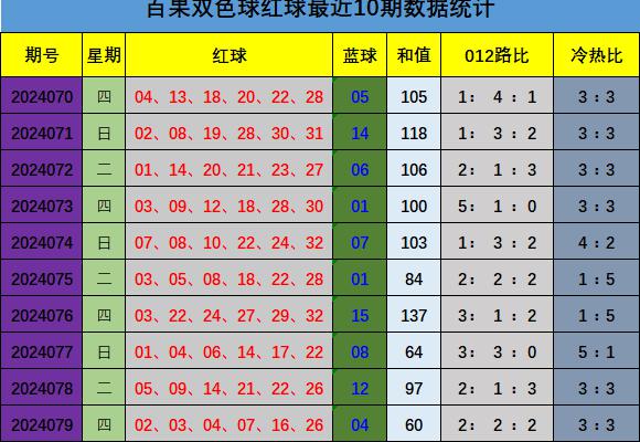 冷热比分析:上期开出红球冷热比3:3,近10期冷热比29:31,综合分析,本期预测冷热比3:3。