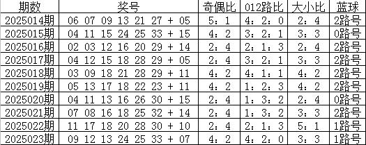 综合分析,双色球第2025024期红球012路比参考2:1:3。
