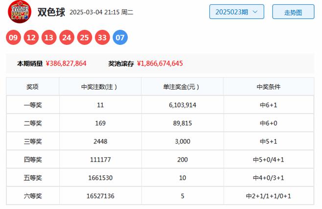 开奖回顾:第2025023期双色球奖号为09、12、13、24、25、33+07。区间比:1:2:3,奇偶比:4:2,首尾间距:24。