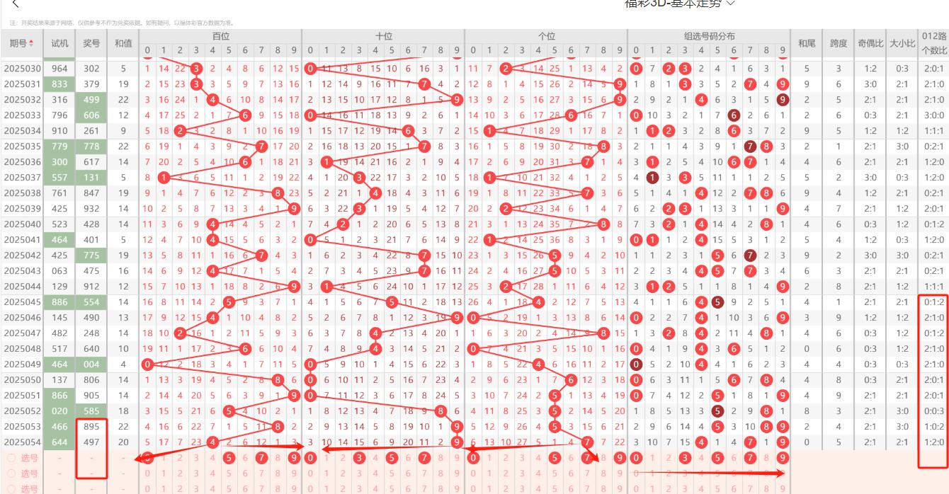 ①百位:上期开出小号偶数4号,在历史开奖记录中显示一般正常的奇偶周期平均在1~3期为普遍现象,偶数连续开出2期上期为1路号码,依据奇偶以及012路周期性规律的转变特征点即本期0路号码有开出的趋势1路号码注意预防。