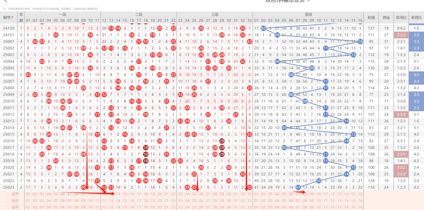 1、红球特征分析:(通过整体走势不难看出每期开奖号都具备以下明显的特征点)