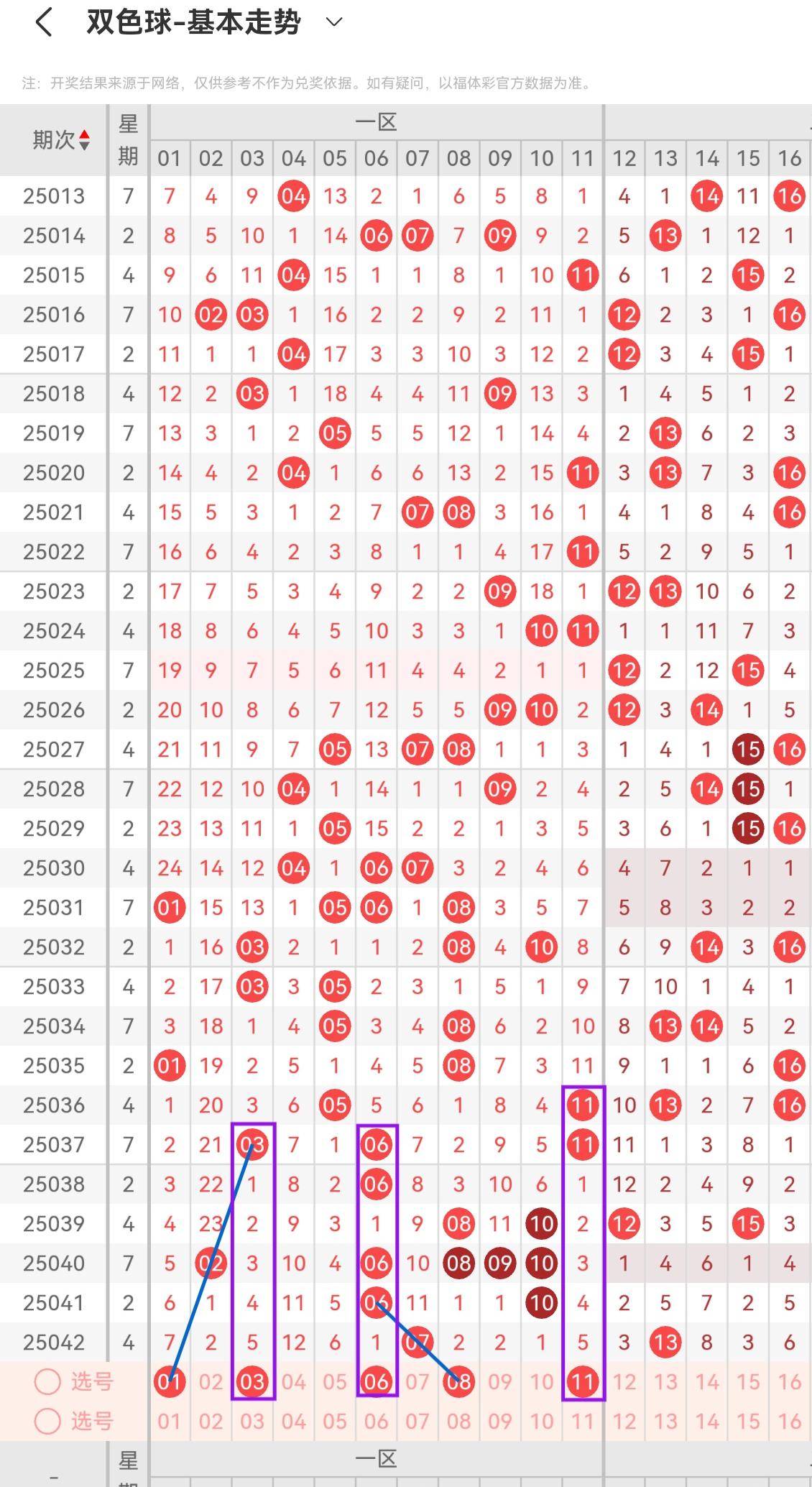 >一区间上期(25042期)开出了一码07,开出了分边号码,本期做号需要注意斜连走势号码能否开出,以及空白区域号码回补落码,区间由温态两码走冷开出单码落码后,本期需要注意是会继续走冷开出单码落码还是会走热开出多码落码,本期首先需要关注的号码【01】七期回补号码带隔空斜连走势,然后是【03】五期回补号码,其次是【06】隔期回补号码带对称形态,【08】两期回补号码带三斜连走势,【11】五期回补号码,本期重点关注号码【01 03 06 08 11】
