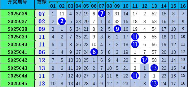 上期蓝球开出奇数号码13。近期奇偶球比值7:3,奇数球走势上升,本期看好奇数球热出,推荐号码05。