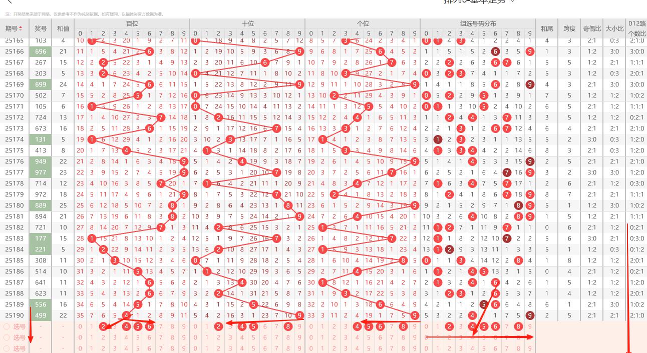 ③个位:上期开出小号偶数2号,上期出现奇偶互变开出偶数2路号码,根据历史记录012路及奇偶周期性规律变化的特征特点本期1路号码有开出的趋势2路号码注意预防。