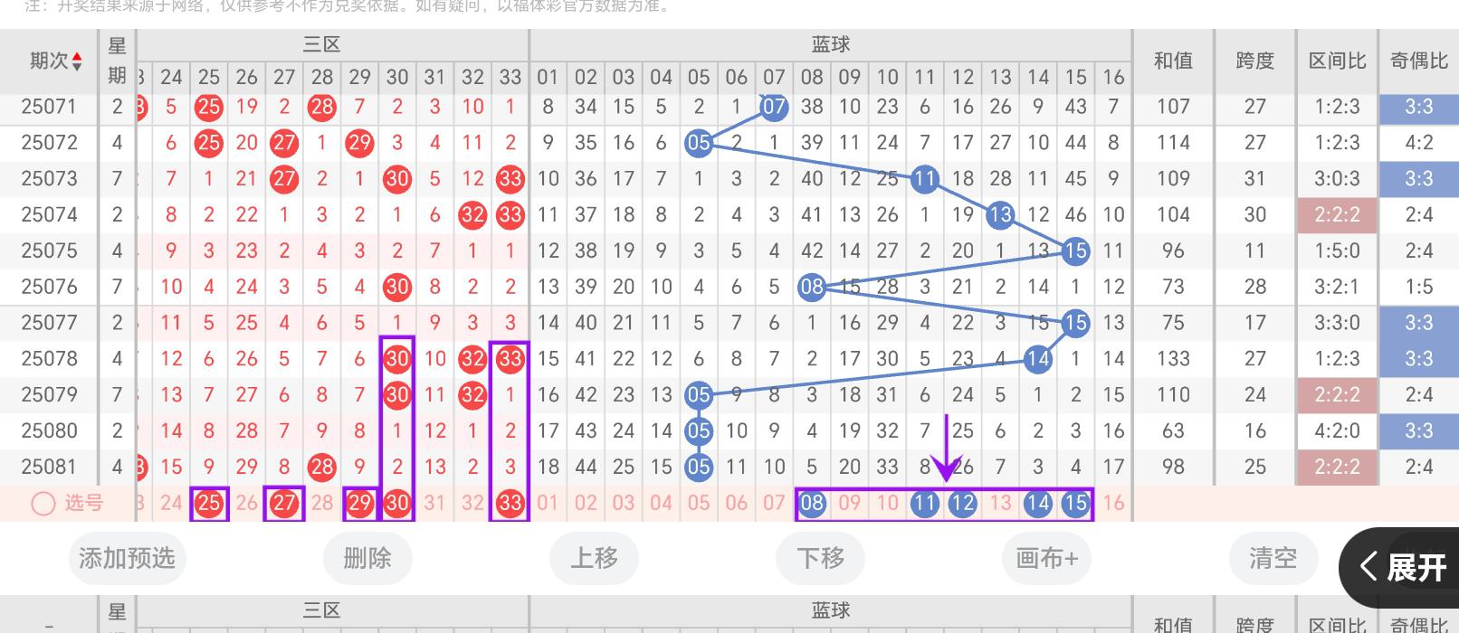 大家好我是排骨精的小胖子专注双色球,冷号,重号分析,根据各区域形态特征分析回补态热号及回调走势,选号技巧及历史规律综合整理:上期回顾双色球第080期的开奖结果(红球:03-07-08-10-16-19,蓝球:05)