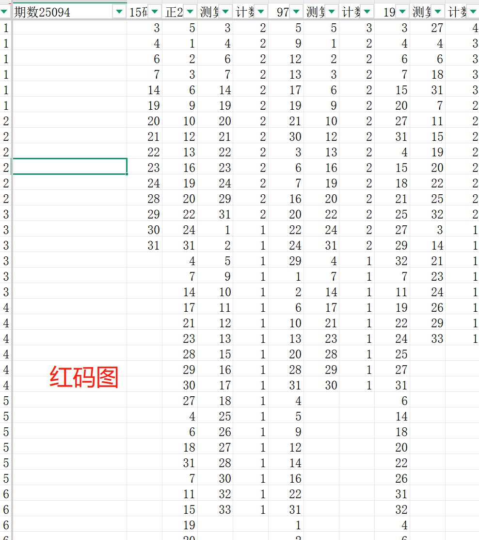 得出一组红码数据就是:3 4 6 7 14 19 20 21 22 23 24 28 29 30 31