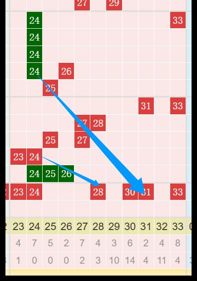 那么现在呢,我们再看一下红球大号区间,上一期开了一个三连24925.26,那么本期的话我们要防一下242526的一个变向,也就是22324,其次还要关注26往大号以及三字头进行旋转,那么三字头最远的时候能旋转到33,那么33很有可能和这个30进行一个组合