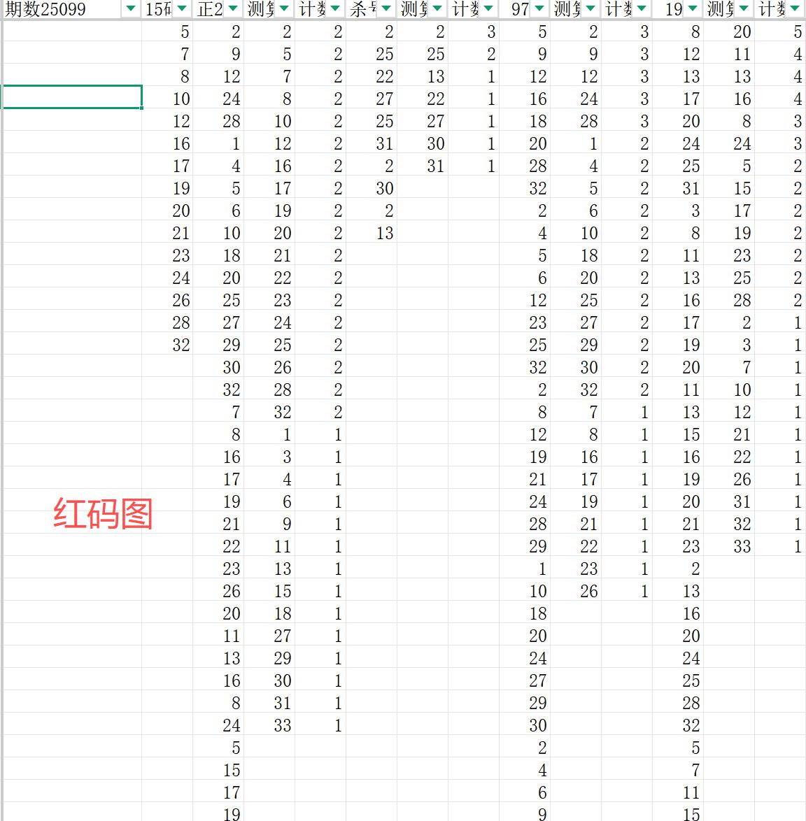 得出一组红码数据就是:5 7 8 10 12 16 17 19 20 21 23 24 26 28 32