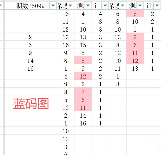 首先可以看一下蓝码的对比结果通过两个图表数据的对比,我们把蓝码的范围确定为2 5 9 14 16